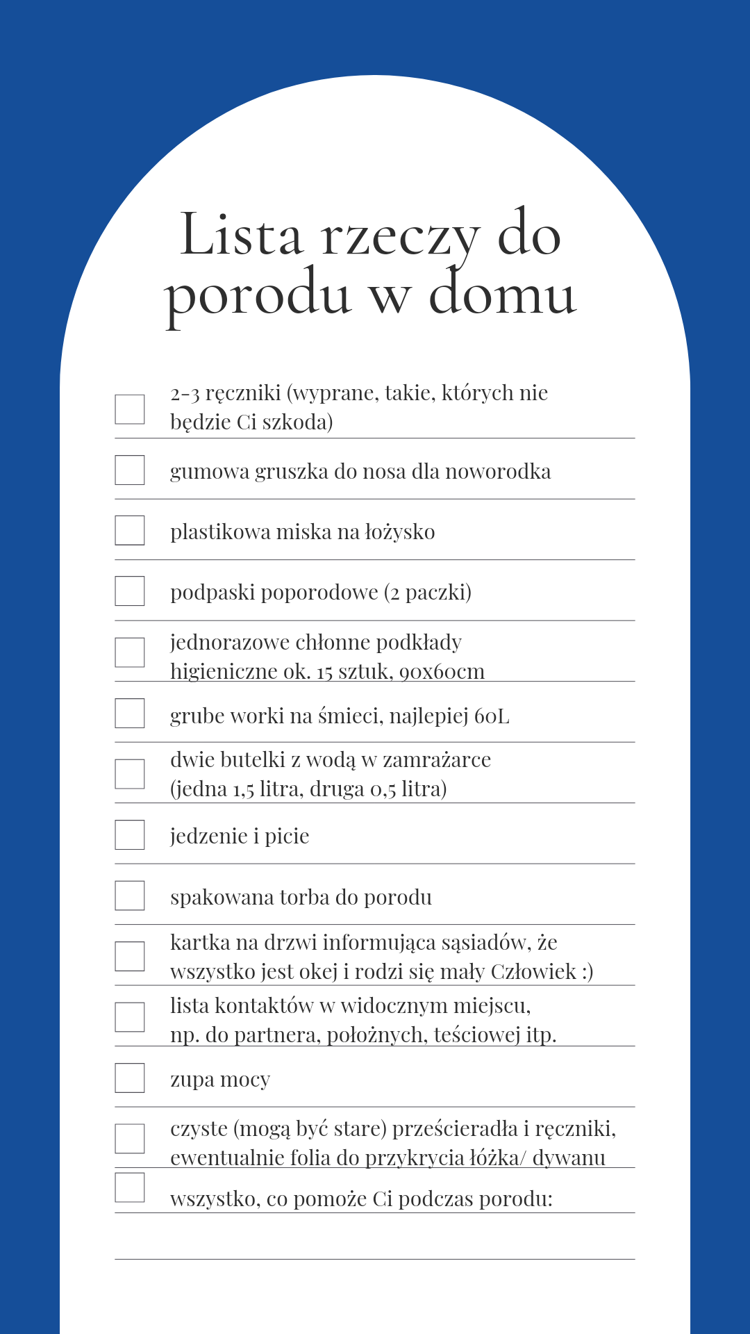 Szczegółowa rozpiska dotycząca kosztów oraz lista rzeczy potrzebnych do porodu są w plikach do pobrania poniżej. Możliwość odbycia porodu w domu zawsze ustalam indywidualnie. Zapraszam do kontaktu w celu ustalenia szczegółów.